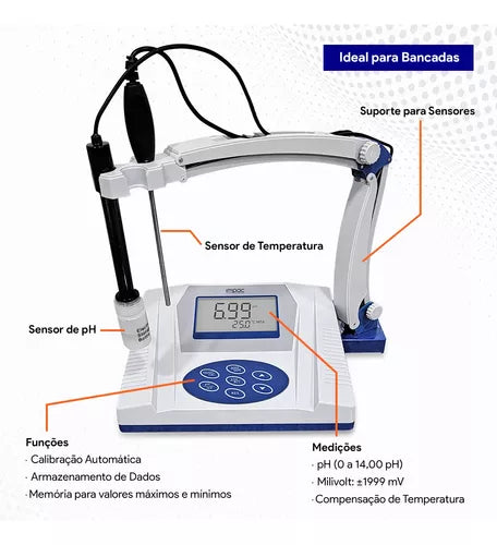 pHmetro de Bancada com Sonda de Temperatura - Bivolt