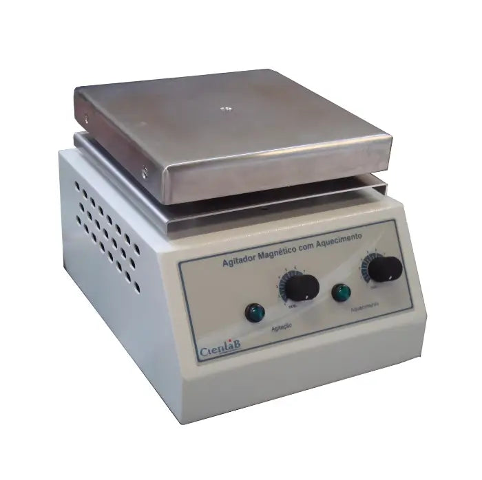 O Agitador Magnético com Aquecimento Cienlab foi desenvolvido para processos de homogeneização e aquecimento simultâneo de soluções líquidas de baixa viscosidade. Possui plataforma quadrada de 180 × 180 mm, disponível em alumínio (CE-1540/QA-18) ou aço inox (CE-1540/QI-18), oferecendo maior área útil para diferentes recipientes.